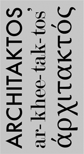 The term architaktos was created in an effort to incorporate the contemporary roll of the architect as one who aims to provide order rather than simply as a craftsman. Essentially it is intended to illustrate the roll of the architect as a designer, master not only as a craftsman but capable of providing thoughtful and appropriate order to craftsmanship through his or her design capabilities.